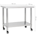 Keukenwerktafel met wielen 100x60x85 cm roestvrij staal
