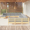 12-piece lounge set with cream-colored cushions pine wood