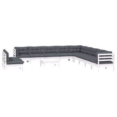 12-delige Loungeset met kussens massief grenenhout wit