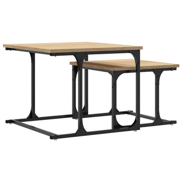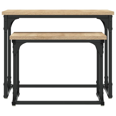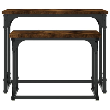 2-delige Tafeltjesset bewerkt hout gerookt eikenkleurig