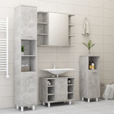 Deze aantrekkelijke badkamerkastenset biedt veel opbergruimte en heeft een trendy en toch praktisch ontwerp.
