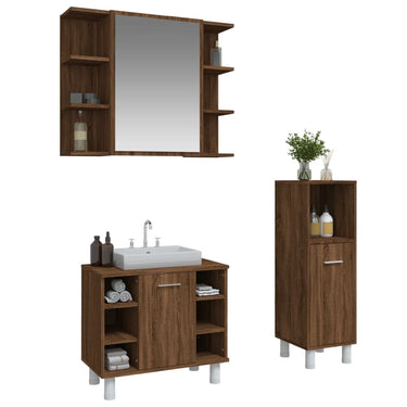 3-delige Badkamermeubelset bewerkt hout gerookt eikenkleurig