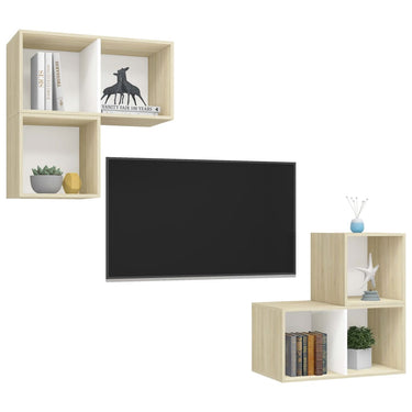 4-piece TV furniture set chipboard white and sonoma oak colored