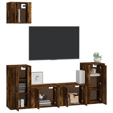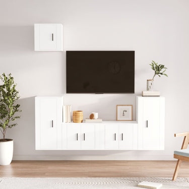 5-delige Tv-meubelset bewerkt hout hoogglans wit