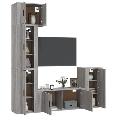 5-delige Tv-meubelset bewerkt hout grijs sonoma eikenkleurig