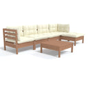6-delige Loungeset met crèmekleurige kussens grenenhout