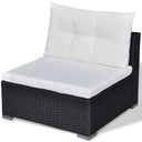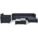 Dankzij het weer- en waterbestendige PE-rattan is de loungeset gemakkelijk schoon te maken, slijtvast en geschikt voor dagelijks gebruik. De tuinbankenset heeft een stevig frame van duurzaam gepoedercoat staal. De set is ook lichtgewicht en modulair, waardoor alle onderdelen gemakkelijk kunnen worden verplaatst en de set aan elke situatie aangepast kan worden. De dikke, verwijderbare kussens zijn erg comfortabel.