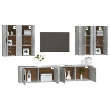 6-delige Tv-meubelset bewerkt hout gerookt eikenkleurig