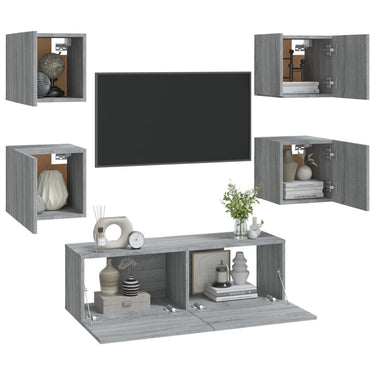 Tv-wandmeubelset bewerkt hout grijs sonoma eikenkleurig