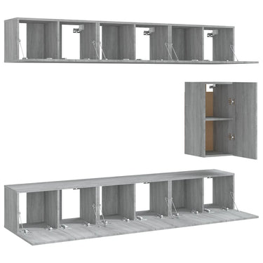 6-delige Tv-meubelset bewerkt hout betongrijs