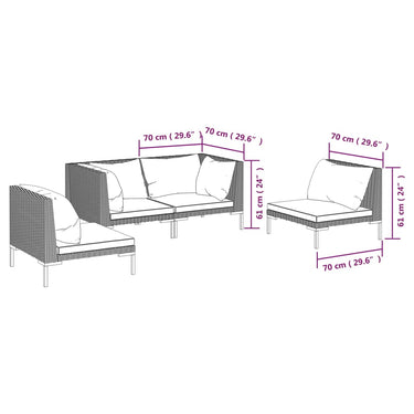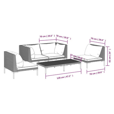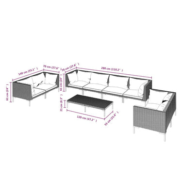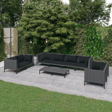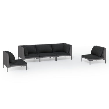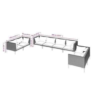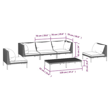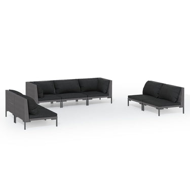 7-delige Loungeset met kussens poly rattan donkergrijs