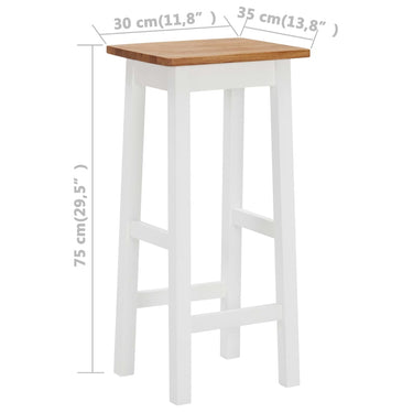 These bar stools have tops made of solid oak wood, making them stable and sturdy. The solid acacia wood legs contribute to the sturdiness. Our stools have built-in footrests at two different heights for extra seating comfort.