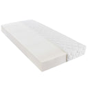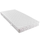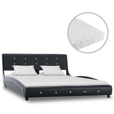 Dit bedframe onderscheidt zich door een ingetogen en toch elegant ontwerp, en voegt een vleugje elegante charme toe aan je slaapkamer. Het is gemaakt van ijzer en hout, en is buitengewoon stevig en duurzaam. De gepoedercoat stalen poten maken het bed extra duurzaam. Het bed is bekleed met duurzaam kunstleer waardoor het een uitnodigende uitstraling heeft en gemakkelijk schoon te maken is. Het meegeleverde matras heeft een dikte van ca. 17 cm, is zacht en comfortabel en heeft een gewatteerde, wasbare hoes. Het verdeelt automatisch je gewicht en vermindert stress op de drukpunten van je lichaam. Het matras wordt sterk aanbevolen voor het verzachten van gewrichtspijn, slapeloosheid, rugpijn en nekpijn. De bovenlaag van het matras absorbeert vocht en zorgt voor een goede warmte-isolatie. Bovendien is het matras gemakkelijk schoon te maken dankzij de wasbare hoes, zodat het altijd hygiënisch blijft. Het matras bestaat uit 3 lagen, van boven naar beneden: 1 cm wasbare, gevoerde hoes, 15 cm 30 D schuim, 1 cm wasbare, gevoerde hoes.