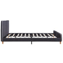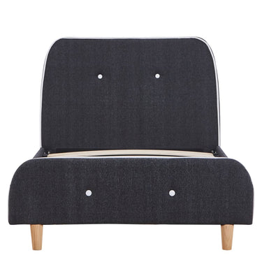 Dit bedframe wordt gekenmerkt door een ingetogen en toch elegant design en voegt een vleugje prachtige charme toe aan je slaapkamer. Het frame is gemaakt van hout en ijzer en is zeer stevig en duurzaam. De houten poten maken het bed extra duurzaam. Bovendien heeft het bed, gestoffeerd met duurzame stof, een uitnodigende uitstraling en is het gemakkelijk schoon te maken. Dit bedframe is geschikt voor een matras van 90 x 200 cm.