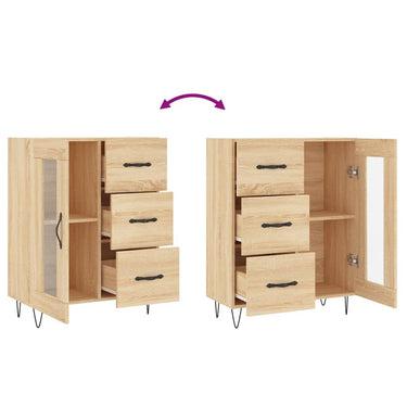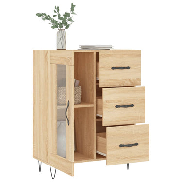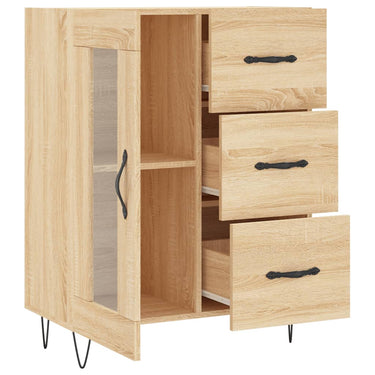 - Voldoende opbergruimte: het dressoir heeft 3 lades en achter de glazen deur zitten 2 vakken en biedt voldoende ruimte om verschillende dagelijkse benodigdheden geordend en binnen handbereik op te bergen.