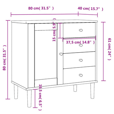 Dressoir SENJA 80x40x80 cm rattan look massief grenenhout bruin