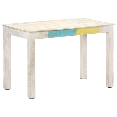 Deze eettafel is gemaakt van massief mangohout, een tropisch hardhout dat veel gewicht kan dragen en bestand is tegen slijtage. Het vakmanschap en de prachtige houtnerven maken elk meubelstuk uniek en net iets anders dan de rest. Het stevige tafelblad is perfect voor het plaatsen van eten. Het kan ook worden gebruikt om drankjes of snacks op te plaatsen. De tafel heeft een whitewash afwerking en is een decoratieve aanvulling op je interieur.