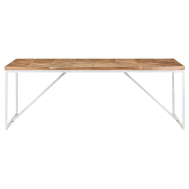 Deze keukentafel is handgemaakt van massief acacia- en mangohout, waardoor hij zeer stabiel en duurzaam is. Mangohout is een hardhout met dichte nerven en acaciahout is een tropisch hardhout dat weerbestendig is. Elke stap van het proces wordt met de grootste zorg uitgevoerd, of het nu polijsten, verven of lakken is. De zwart gepoedercoat stalen poten bieden extra stabiliteit. Het stevige tafelblad heeft een chevron en mozaïek ontwerp, waardoor de tafel perfect in je interieur past. De tafel is ideaal voor het plaatsen van drankjes en snacks.
