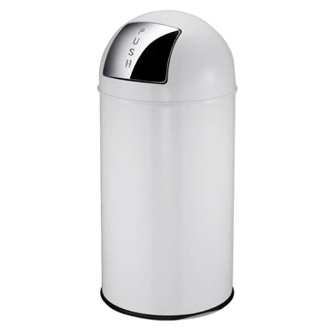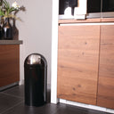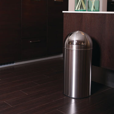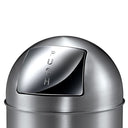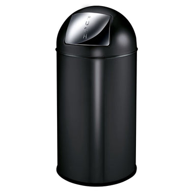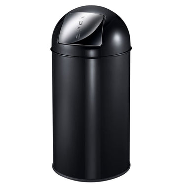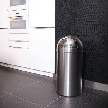 De matzilveren Pushcan vuilnisbak van EKO is een universele prullenbak met drukdeksel en een gegalvaniseerd stalen binnenemmer van 40 L.
