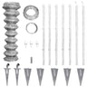 Alle benodigde bevestigingsaccessoires zijn bij de levering inbegrepen! De levering bevat 1 gegalvaniseerd gaashek, 5 gegalvaniseerde palen, 5 gegalvaniseerde grondankers voor palen, 2 gegalvaniseerde diagonale palen, 2 gegalvaniseerde grondankers met diagonale palen, 1 bovendraad, 1 binddraad en 3 draadspanners.