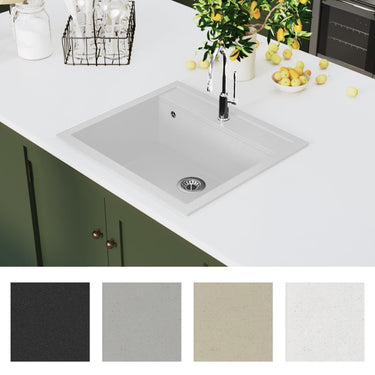Het hoogwaardige graniet maakt de gootsteen hittebestendig, kras- en slagvast en gemakkelijk schoon te maken. Een zeefje is ook inbegrepen voor eenvoudige verwijdering van vuil. De gootsteen is eenvoudig te monteren.
