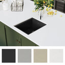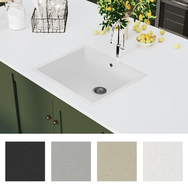 De wastafel is gemaakt van graniet waardoor hij hittebestendig, kras- en slagvast en gemakkelijk schoon te maken is. Een zeefje is ook inbegrepen voor eenvoudige verwijdering van vuil. Het afvoergat heeft een diameter van 90 mm.