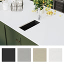 Deze granieten gootsteen is een tijdloze aanvulling op je keukeninrichting. Hij heeft een enkele, extra diepe bak en een strak ontwerp.