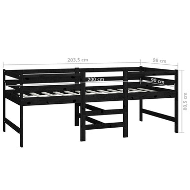 Halfhoogslaper met matras massief grenenhout zwart 90x200 cm