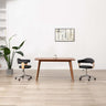Hij biedt een comfortabele plek voor je gezin om te werken in de studeerkamer of uit te rusten in de woonkamer. De zitting en rugleuning zijn ergonomisch ontworpen en bekleed met zacht kunstleer. Ze maken de stoel zeer comfortabel om uren op te zitten. Het houten frame en de stalen poten dragen bij aan de duurzaamheid en zijn esthetisch aangenaam. De stoel is 360 graden draaibaar. Dankzij het gasveermechanisme is de bureaustoel in hoogte verstelbaar.
