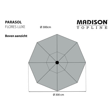 Deze tuinparasol Flores Luxe uit de Madison TOPLINE serie is een duurzame, stabiele en hoogwaardige parasol die perfect is voor in je buitenruimte!