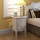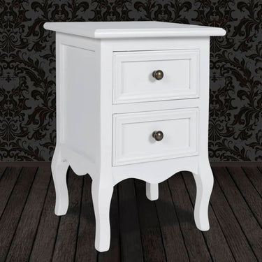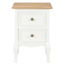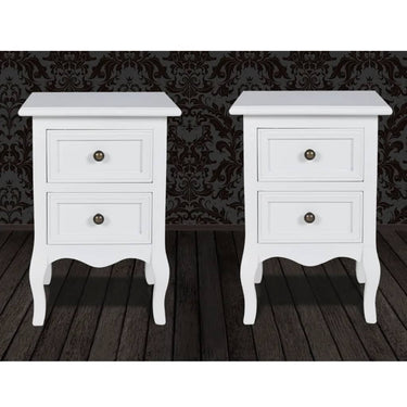 Deze set van 2 nachtkastjes in vintage stijl wordt geleverd met lades zodat je slaapkamerspulletjes altijd bij de hand hebt.