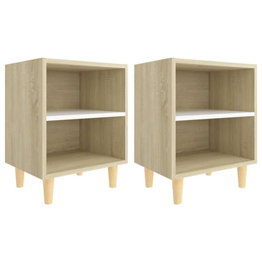 Nachtkastjes 2 st met massief houten poten 40x30x50 cm wit