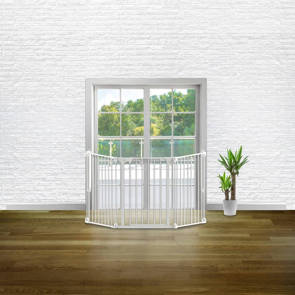 Het lichtgewicht en veelzijdige modulaire hekje is ontworpen om zonder verlengingen in openingen van 79,4 cm tot 197,5 cm te passen.