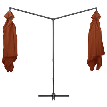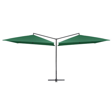 Deze elegante dubbele parasol is perfect om wat schaduw te creëren en jezelf te beschermen tegen de schadelijke uv-stralen van de zon. Het kenmerkende dubbele parasolontwerp maakt hem de blikvanger van je achtertuin!