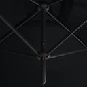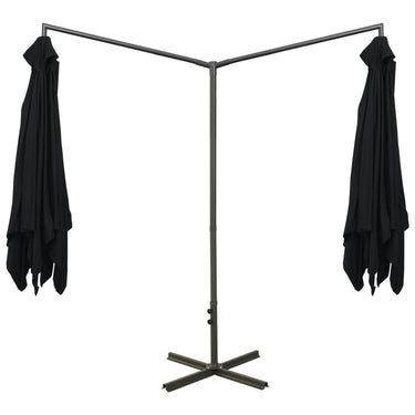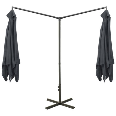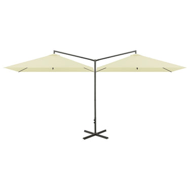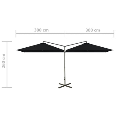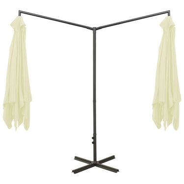 Deze parasol is gemaakt van polyester waardoor je optimaal beschermd bent tegen de zon. De stevige stalen paal en de stevige stalen baleinen houden de parasol stabiel. Hij heeft een stalen kruisvoet voor extra stabiliteit. Dankzij het ontwerp van 2 doeken naast elkaar is de parasol heel praktisch, elegant en uniek. Hij zorgt niet alleen voor meer schaduw, maar is ook een blikvanger in je tuin. De tuinparasol kan overigens eenvoudig geopend en gesloten worden.