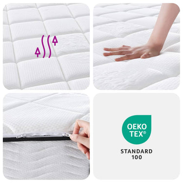 - Verbeterd comfort: de pocketveringmatras is ontworpen met meerdere lagen, waaronder een schuimlaag, een isolatiekussenlaag en een verende laag. Deze combinatie zorgt voor een zacht tot middelhard gevoel en wiegend comfort voor alle slaapposities. Bovendien absorbeert het matras effectief geluid en trillingen veroorzaakt door woelen en draaien, waardoor een rustige en ongestoorde slaap wordt gegarandeerd.