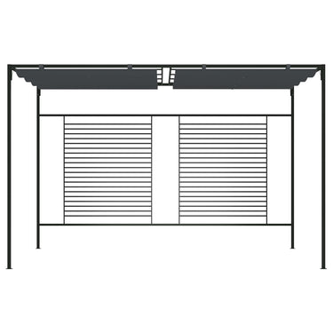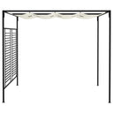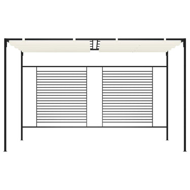 Dit paviljoen heeft een massief ijzeren constructie, waardoor het sterk en stevig is voor buitengebruik. Het uittrekbare dak biedt bescherming tegen schadelijke uv-stralen en de regen, zodat je onbezorgd kunt genieten van buitenevenementen.