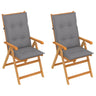 Tuinstoelen 2 st met grijze kussens massief teakhout