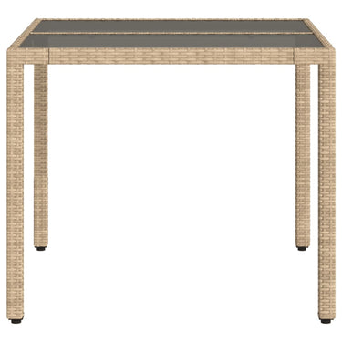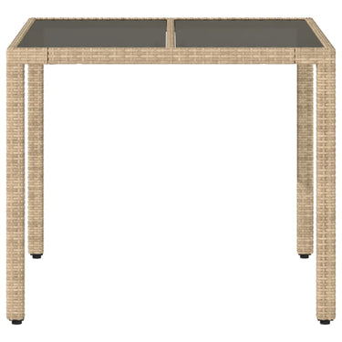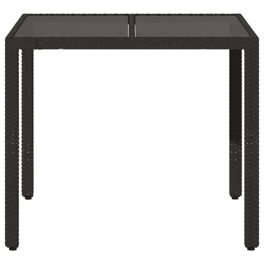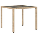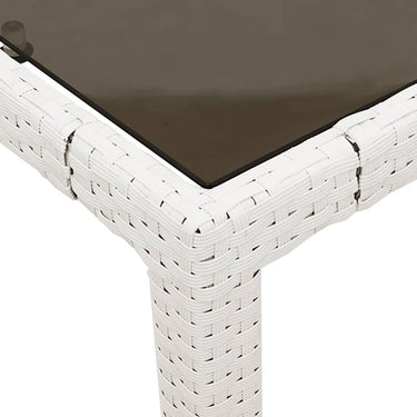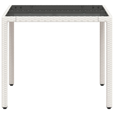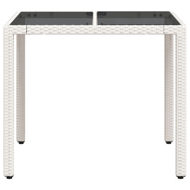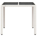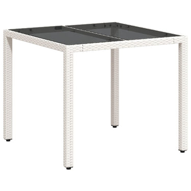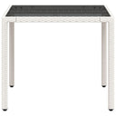 Tuintafel met glazen blad 90x90x75 cm poly rattan wit