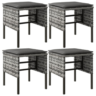 Tuinvoetenbanken 4 st met kussens poly rattan grijs