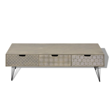 Dit tv-meubel met drie lades heeft een eenvoudig, maar stijlvol ontwerp met elegante decoratieve patronen in verschillende kleuren. Hij kan ook worden gebruikt als bijzettafel, telefoontafel, dressoir, enz.