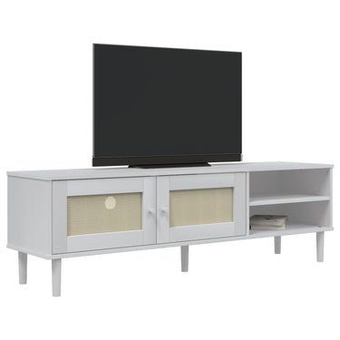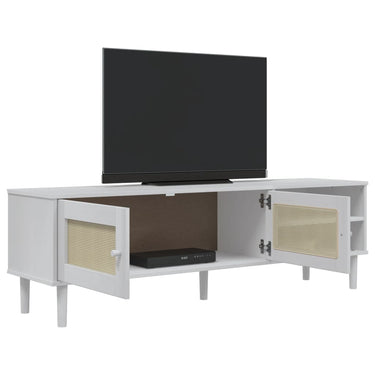 Tv-meubel SENJA 158x40x49 cm rattan-look massief grenenhout wit