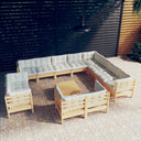 De loungeset is gemaakt van massief grenenhout, waardoor hij stevig en stabiel is. De kussens bieden extra comfort. Je kunt hem combineren met andere modulaire segmenten om zo je eigen persoonlijke loungeset samen te stellen!