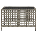 - Materiaal: PE-rattan, gepoedercoat staal en gehard glas