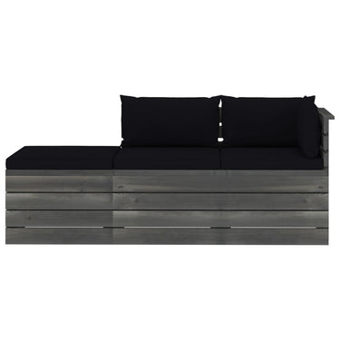 3-delige Loungeset met kussens pallet massief grenenhout