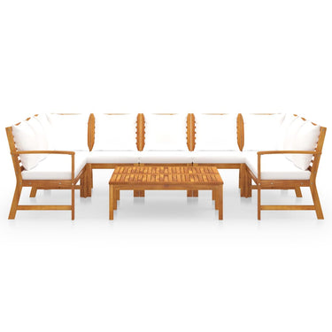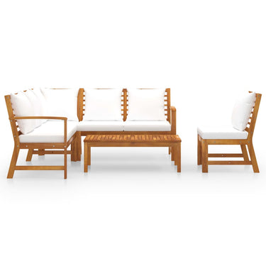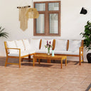Deze meubelset is gemaakt met een massief acaciahouten frame waardoor hij sterk, stevig en duurzaam is. De olieafwerking maakt loungeset geschikt voor buitengebruik. De inbegrepen salontafel heeft een uniek gelat ontwerp. Je kunt snacks, drankjes, boeken, enz. op de salontafel plaatsen en binnen handbereik houden. Deze set wordt geleverd met zeer comfortabele, dik gevoerde zit- en rugkussens. De onderhoudsarme polyester hoezen kunnen verwijderd en gewassen worden. Bovendien vallen alle onderdelen op door het modulaire ontwerp en kunnen ze naar wens geplaatst worden.