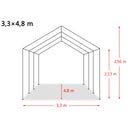 - Afmetingen: 3,3 x 4,8 x 2,56 m (L x B x H)