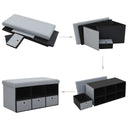 De halbank is gemaakt van MDF en is bekleed met kunstlinnen waardoor hij duurzaam en stabiel is. Dit bankje, gevuld met schuim, is comfortabel om op te zitten. De 3 vakken en 3 lades bieden voldoende opbergruimte om een groot aantal verschillende spullen binnen handbereik te houden. Bovendien kan de kist worden ingeklapt om ruimte te besparen wanneer hij niet in gebruik is.