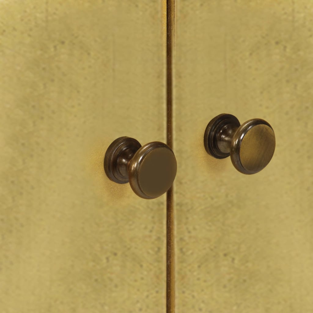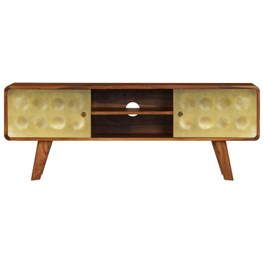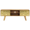 Onze houten tv-kast in retro stijl heeft een decoratieve gouden print aan de voorkant en geeft je woonruimte een vleugje luxe.