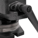 De bankschroef met 2 assen, kantel- en rotatiefunctie en een bekbreedte van 160 mm, is gemaakt van massief gietijzer. Hij heeft een massieve schroefdraad voor het moeiteloos en stabiel vastklemmen van werkstukken.